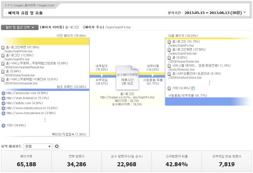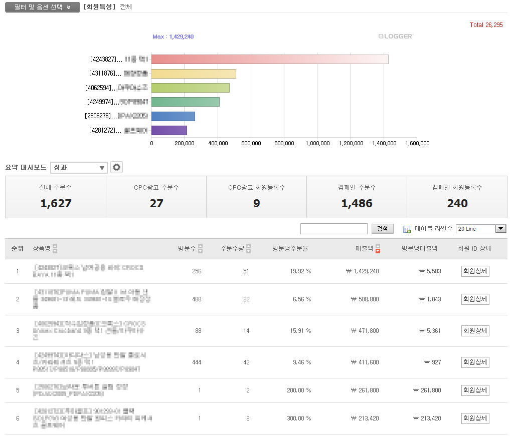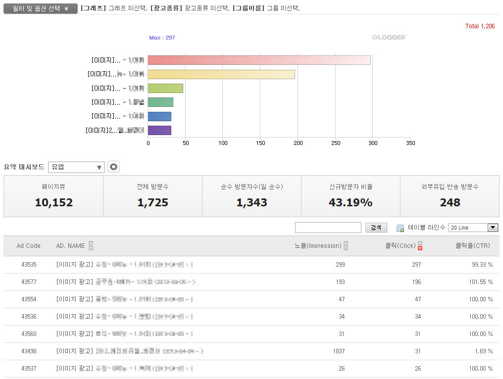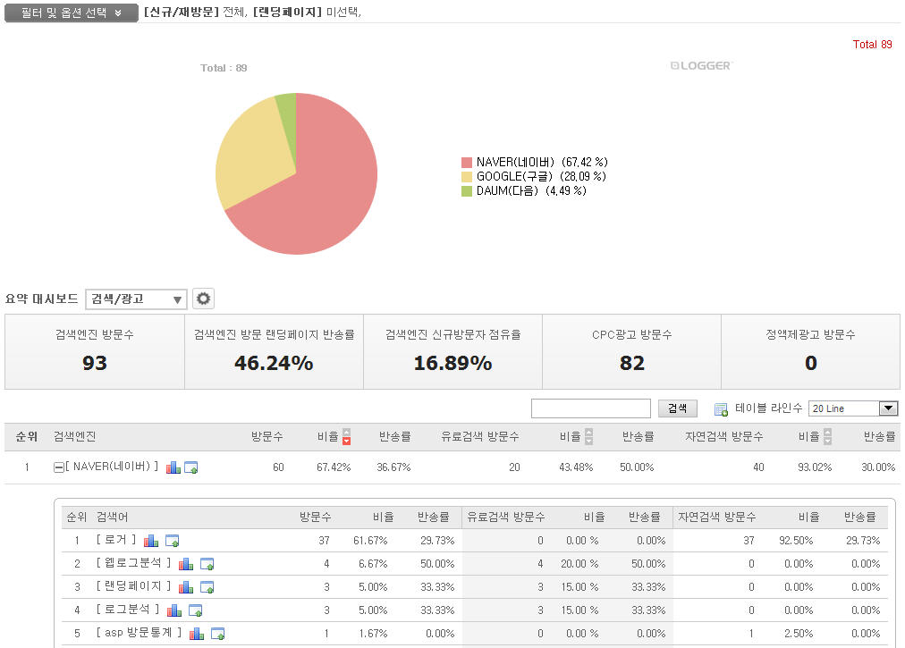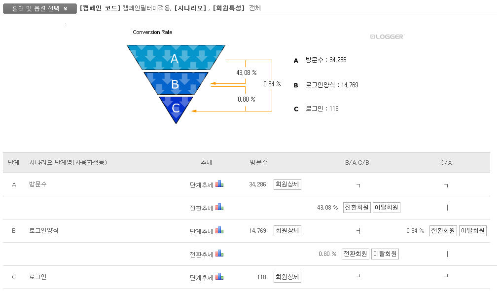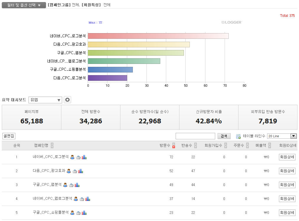 전환율을 극대화시키기 위한 효과 측정의 방법 광고 수익률을 높이거나 웹사이트의 매출액을 향상 시키기위해서는 온라인마케팅 활동에 대한 성과를 측정하는 것이 중요합니다.로거™는 광고에 대한 직접적인 효과를 측정하고 웹사이트에서 고객들이 전환을 일으키는 과정을 추적하여 다양한 형태의 데이터 및 보고서로 제공합니다.