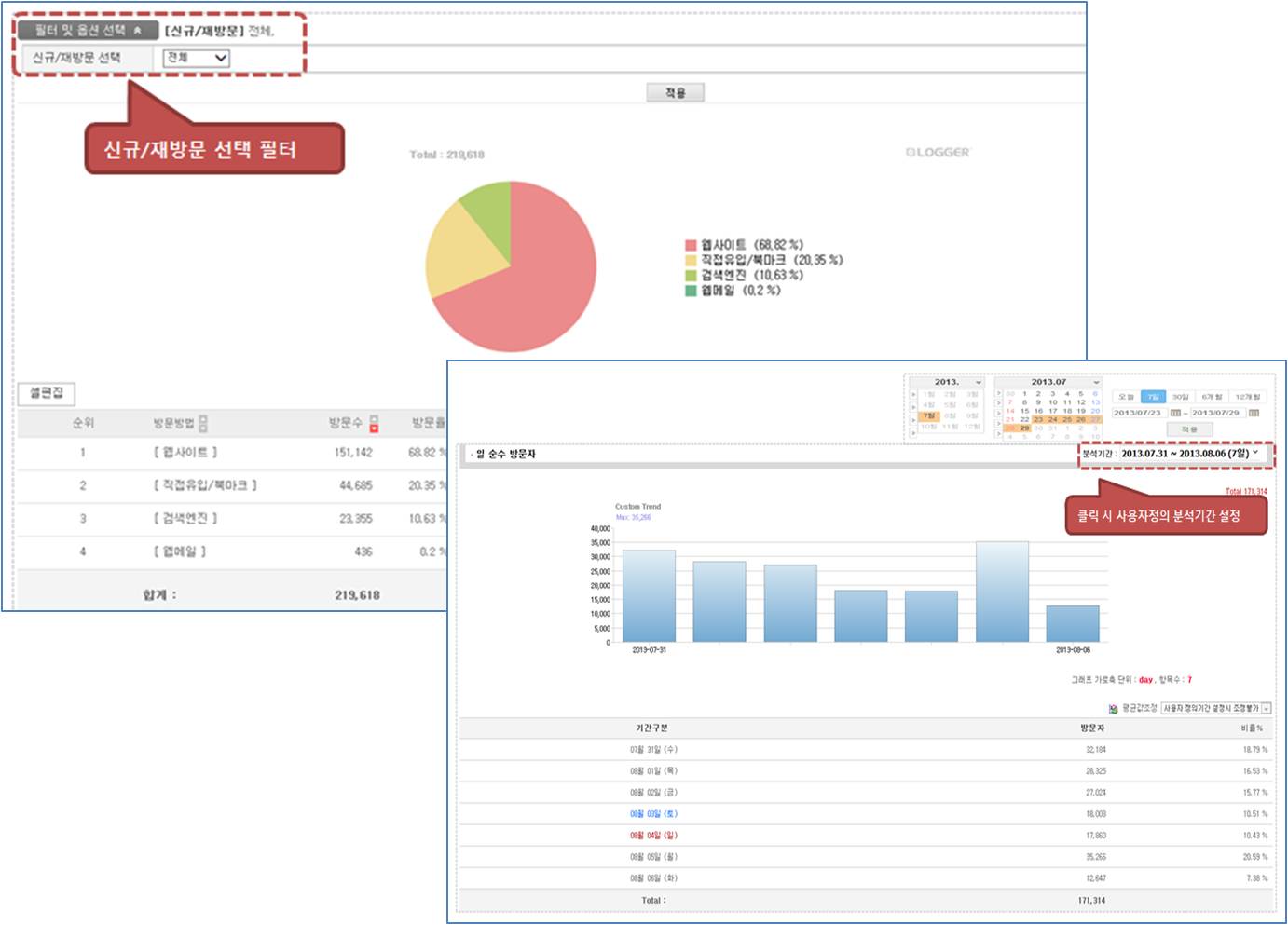 기존 '웹로그분석'에서 제공되는 리포트도 함께 제공합니다.